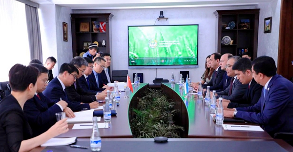 Huai Jinpeng and his delegation held discussions with Ibrokhim Yulchiyevich Abdurakhmonov, Minister of Agriculture Resources of the Republic of Uzbekistan, and Sharipov Kongratbay Avezimbetovich, Minister of Higher Education, Science and Innovation of the Republic of Uzbekistan. Both sides exchanged views on actively promoting future cooperation in higher education, agricultural collaboration, and people-to-people exchanges between China and Uzbekistan.